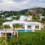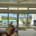Set on a generous 1,068 m² lot within a sought-after gated community, this thoughtfully designed single-level villa offers a perfect balance of privacy, functionality, and long-term potential. The home features three bedrooms, including two that connect seamlessly through the main living area, as well as a third independent bedroom with private exterior access—ideal for guests, rental opportunities, or flexible living arrangements. Inside, the open-concept living and dining area flows effortlessly onto the outdoor terrace and pool, creating a bright and airy environment enhanced by natural light, green valley views, and partial ocean vistas.