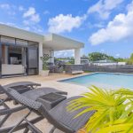 Enjoy beautiful views of the yard, private pool, and covered terrace from every area of the home—conveniently located just steps from the main living space for effortless outdoor living.