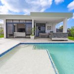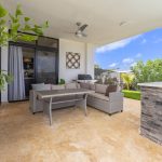 Natural light pours in through expansive glass doors along the side and rear of the home, seamlessly blending indoor and outdoor living. The open-concept great room and kitchen are perfect for both relaxing and entertaining, with large windows that invite in refreshing tropical breezes.