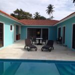 Villa in Sosua community for sale.These beautifully compact and optimally designed villas on the ocean coast are now available for construction. The total area is 186 square meters. There are four comfortable bedrooms with bathrooms, a spacious living room, joined with a kitchen and a dining room. The house project includes three separated buildings. The main one has a spacious living room, joined with a kitchen and a dining room (65 square meters), and a master bedroom with a wardrobe room and a bathroom. Inside the building, which is on the left from the outdoor pool, you will find two bedrooms with a common bathroom. The building on the right from the pool consists of the forth bedroom, an open barbeque zone with a bar counter and a guest bathroom. Such the layout allows you to reach the best use of the land and provides noise insulation between bedrooms and a living room. The glass walls of all rooms let you enjoy lovely views even while dining or resting. The pool size is 28 sq. meters and it has steps for comfortable lowering into the water. The land lot has a green lawn and trees. Here you can place a children’s playground or a few sun loungers. You can choose materials, colors, ceramics, hardware, etc. The developers would be happy to help you in organizing the space of your new house or equipping it according to recent trends and your own taste. By this you will create the house of your dreams and save money at the same time! Villas are sold unfurnished.